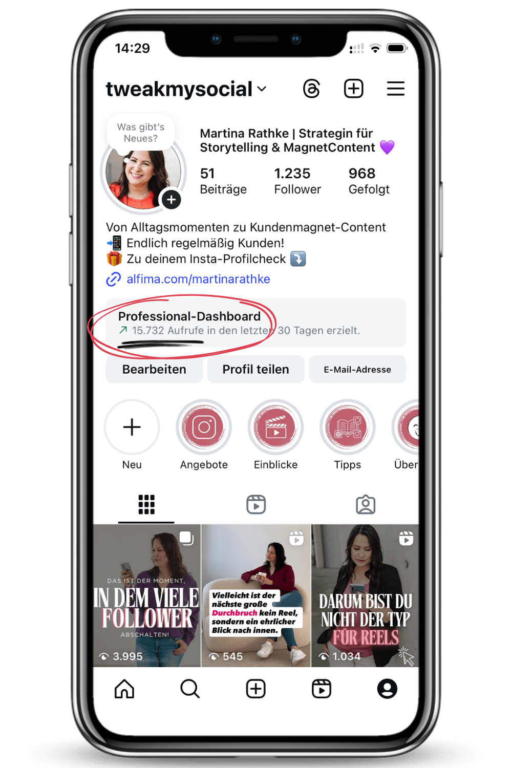 Du siehst dein Profil mit neuen Augen und spürst wieder, warum du das alles machst. Weil dein Instagram nicht länger Bühne ist, sondern Verbindung.